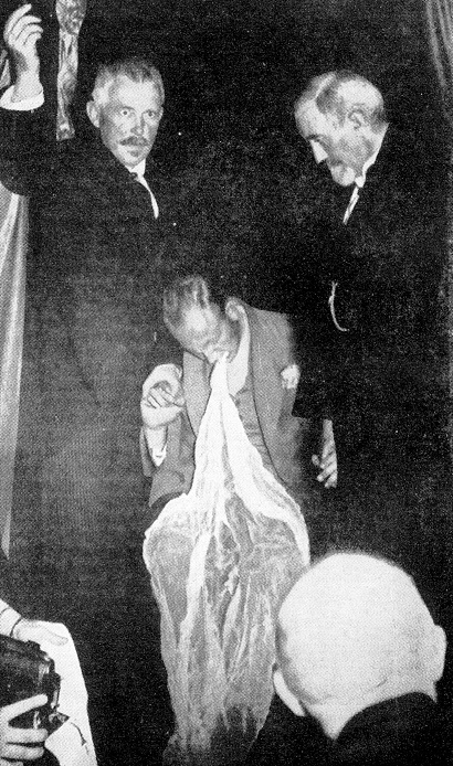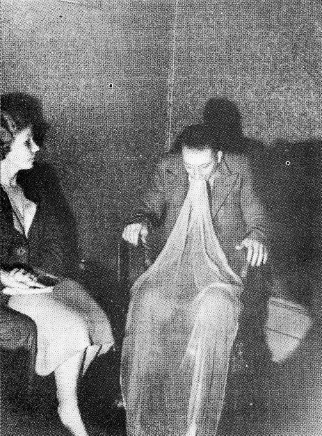 Abbildung unten: Das Schleierphänomen medialen Ektoplasmas wurde zwischen 1880 und 1950 fotografisch weltweit dokumentiert.